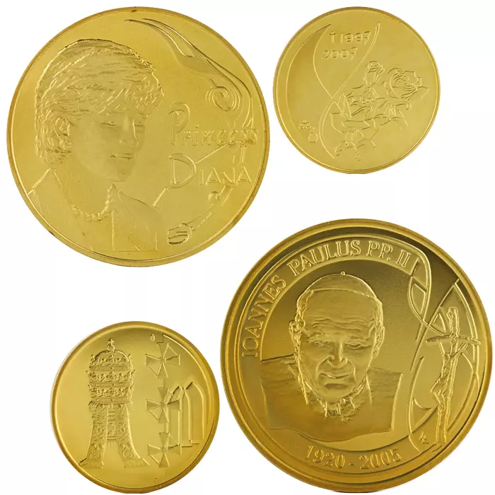 Lot of 2 commemorative medals issued by the Royal Belgian Mint on the occasion of the death of Pope John Paul II in 2005 and the 10th anniversary of the death of Princess Lady Di, which were distributed in the Belgian post offices.