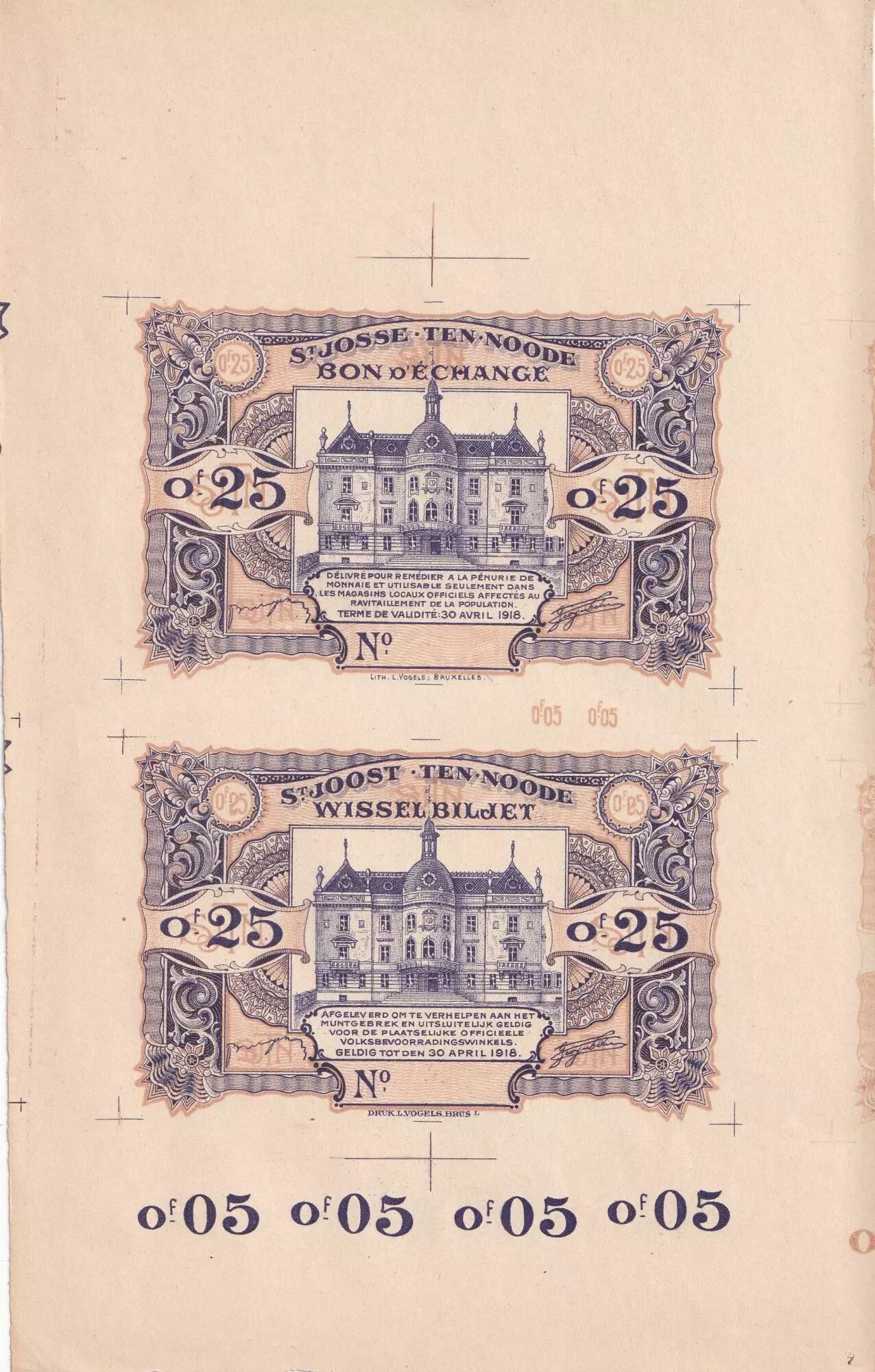 Home > > Belgium Sheet - 25 Cents - Necessity banknote of St Josse-Ten-Noode - Proof recto