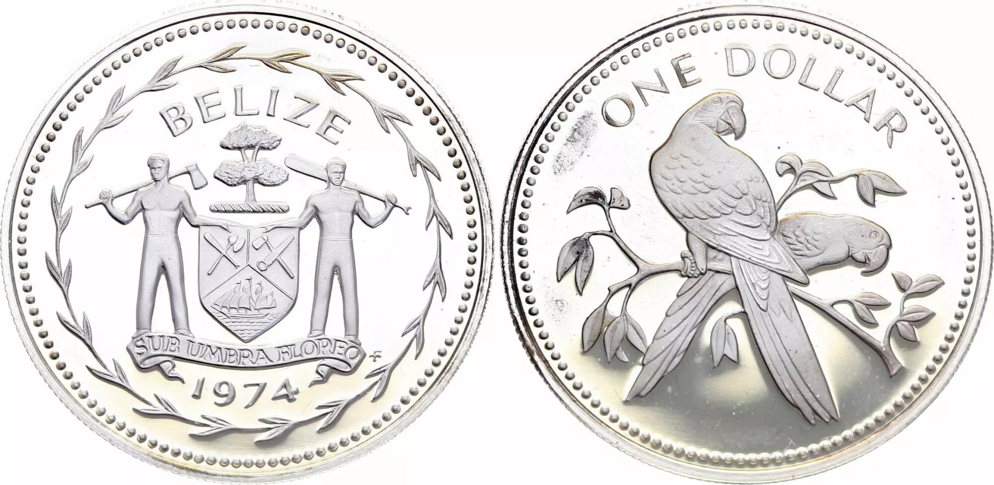 Coin Belize 1 Dollar - Scarlet Macaw - 1974 - Silver Proof