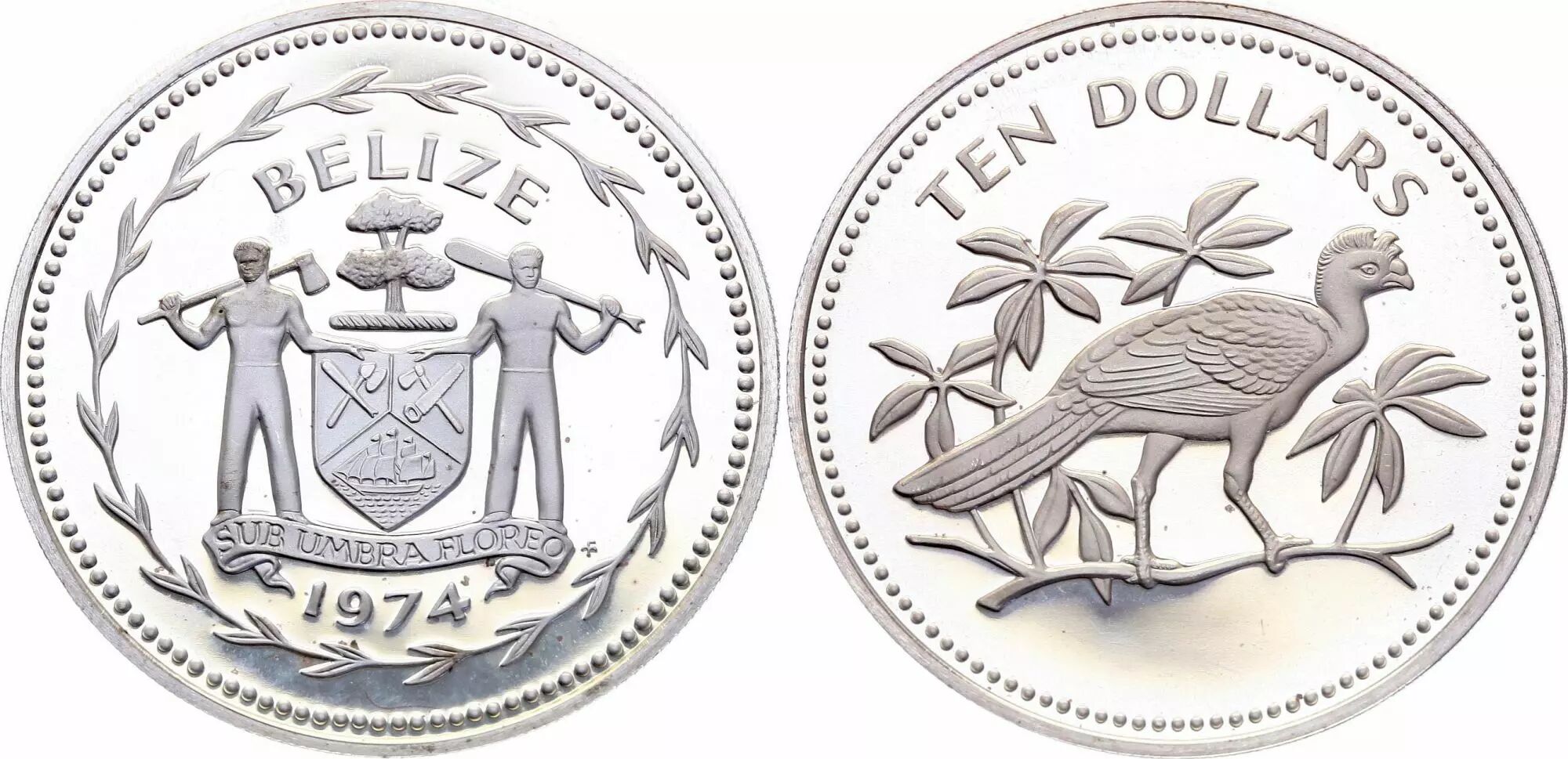 Pièce Belize 10 Dollars - Grand Hocco - 1974 - Argent - Frappe BE