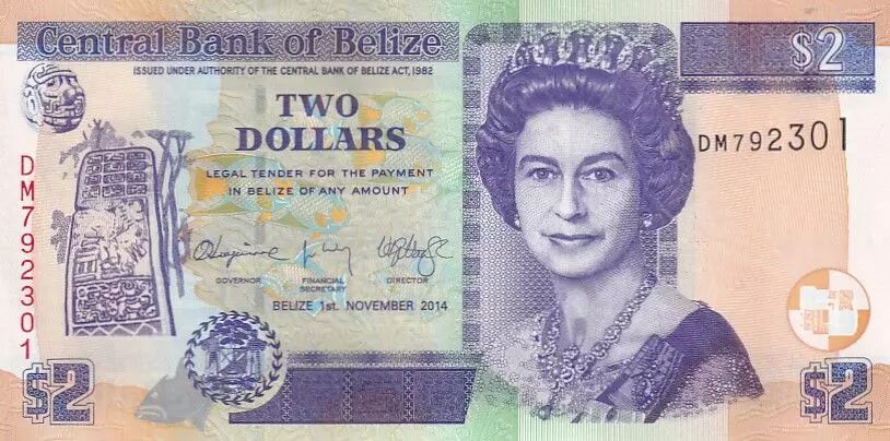 Home > World Banknotes > American Banknotes > Belize > Belize 2 Dollars Elizabeth II - Maya Ruins - 2014 - Serial DM