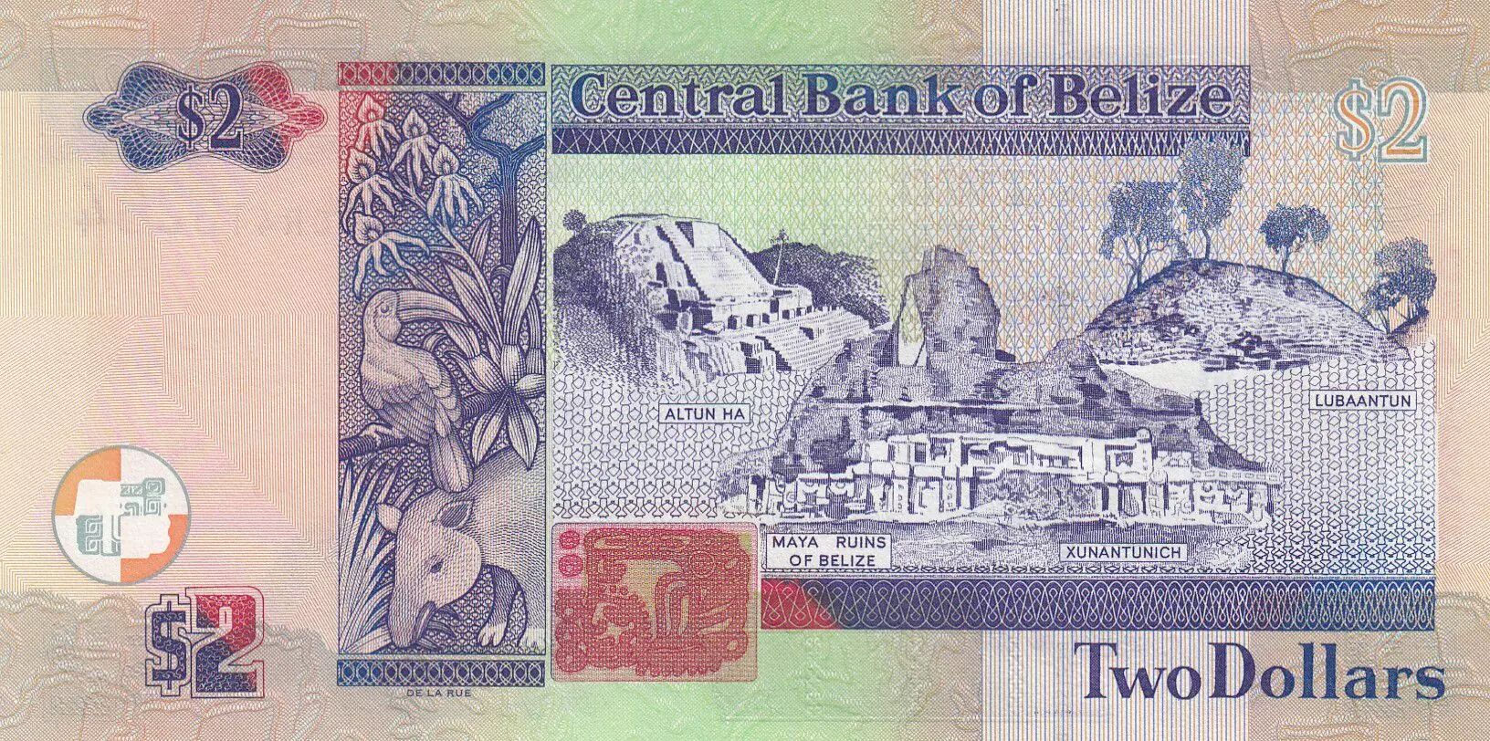 Billet Belize 2 Dollars Elizabeth II, Ruines Maya de Belize - 2017 - Neuf