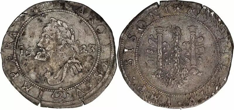 Home > World Coins > European Currencies > Netherlands - Provinces > Netherlands > Besancon 2 Gros Arms - Bust of Charles V - 1623
