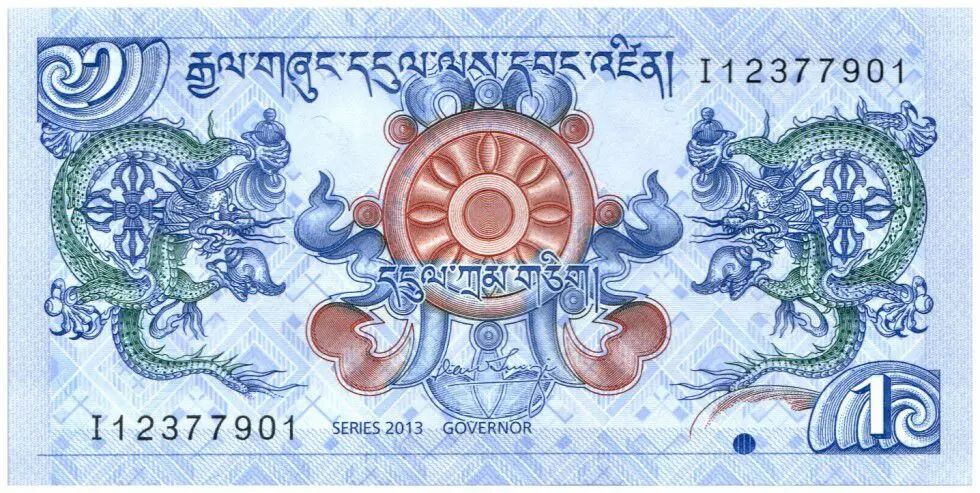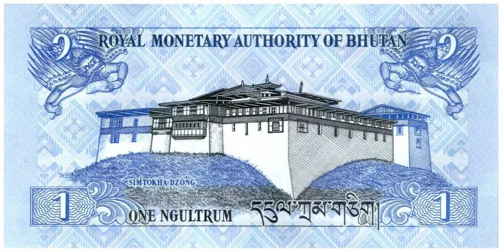 Billet Bhoutan 1 Ngultrum Dragons - Palais Simtokha (Hybride 2013)