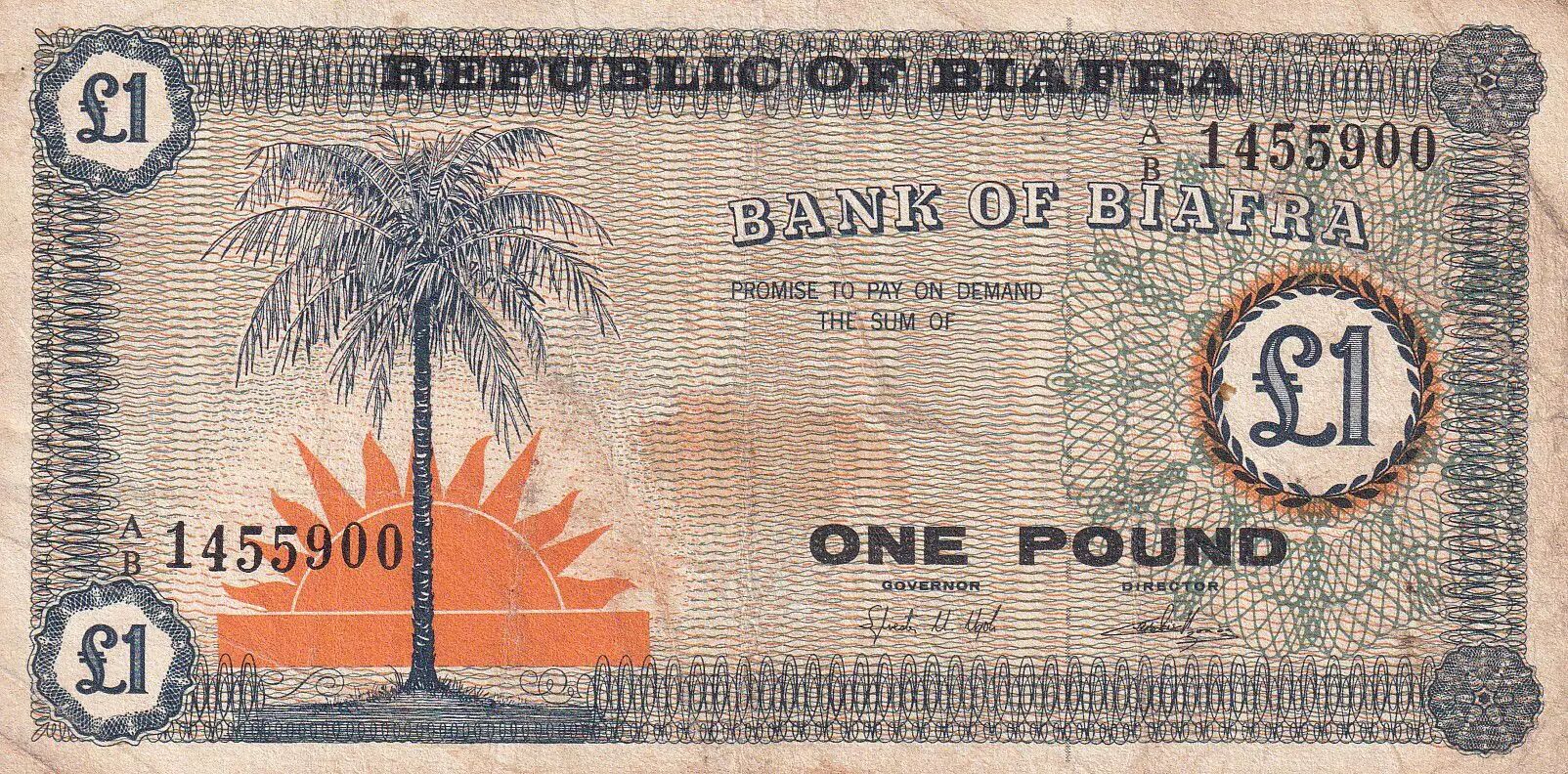 Billet Biafra 1 Pound - Palmier - 1967 - Série AB - P.2