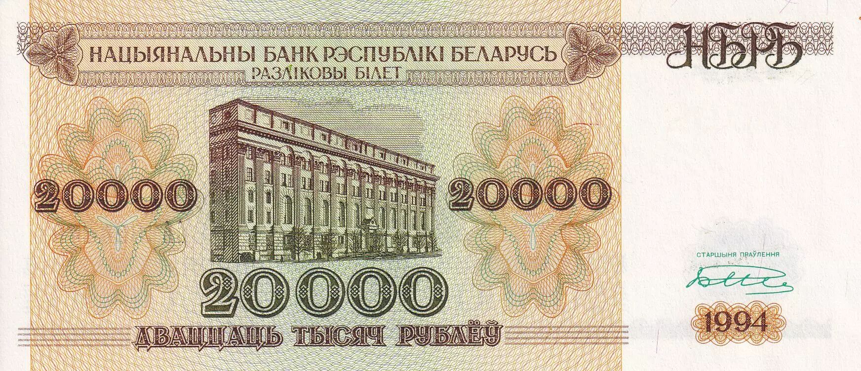 Billet Biélorussie 20000 Roubles - Banque nationale - Pagonya - 1994 - SPL - P.13