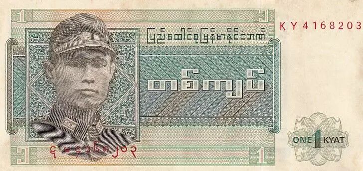 Billet Birmanie 1 Kyat Général Aung San - Métier à filer - 1972