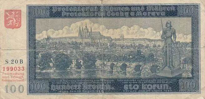 Banknote Bohemia and Moravia 100 Korun - Charle's Castle and Bridge in Praha - 1940