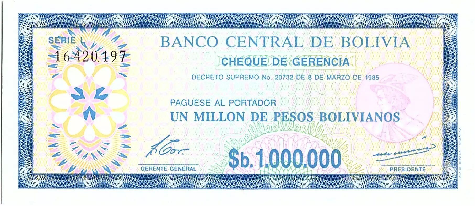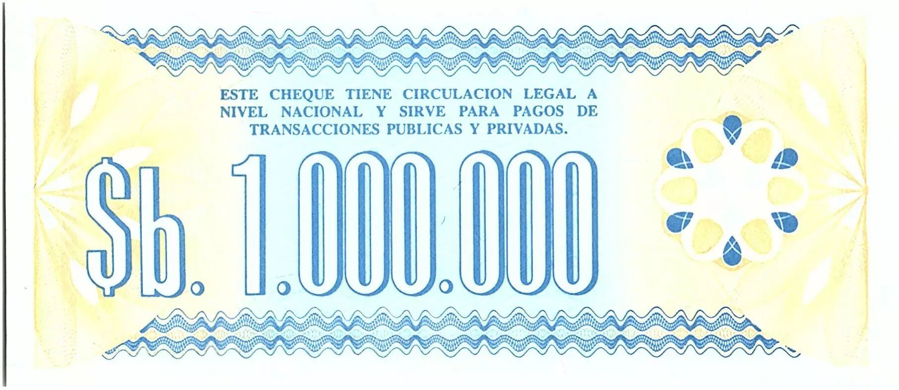 Banknote Bolivia 1 000 000 Pesos , Blue (check) - 1985