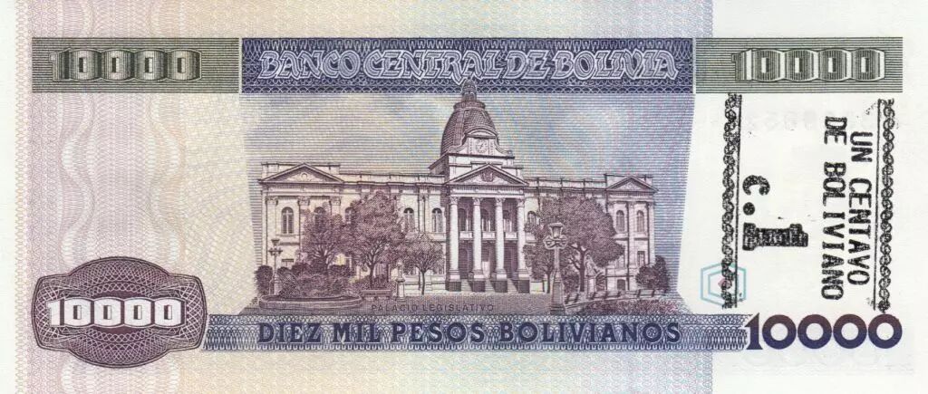 Home > > Bolivia 1 Centavo on 10000 Pesos Marechal De Santa Cruz - 1987