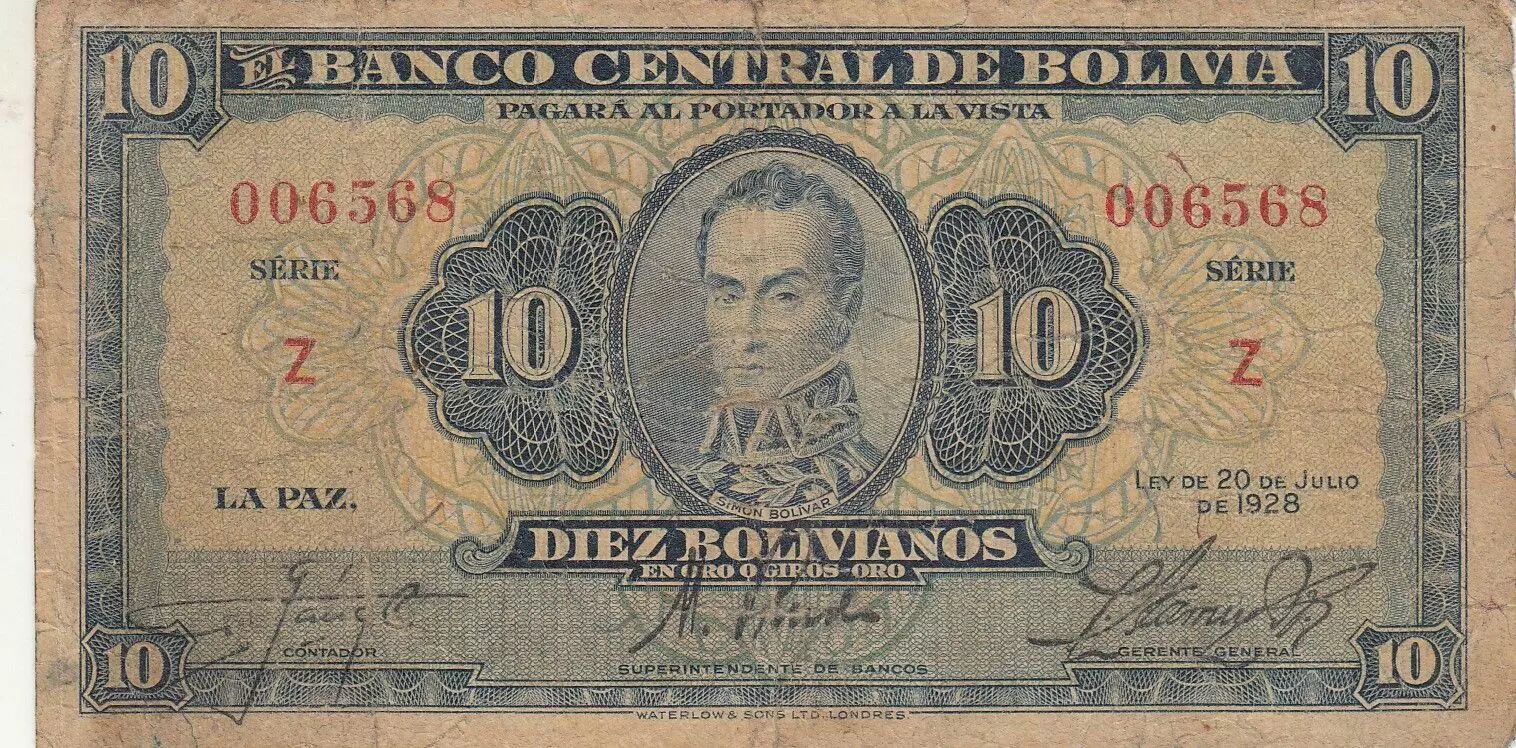 The 10 Bolivianos banknote, issued in Bolivia in 1928, is a specimen from Series Z. It is set in the historical and economic context of Bolivia at that time.
