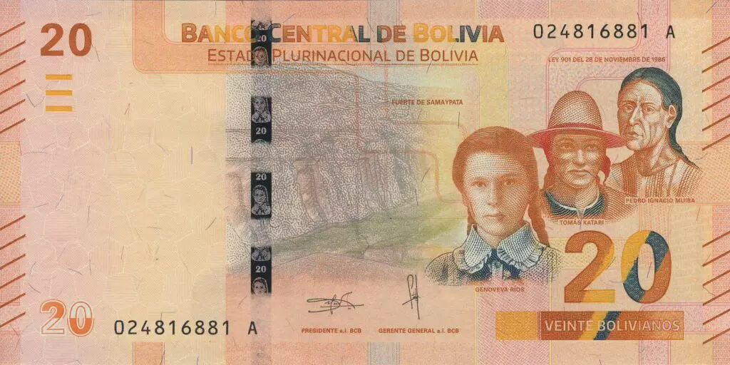 Banknote Bolivia 20 Bolivianos Bolivian Heroes - Alligator - ND (2018)