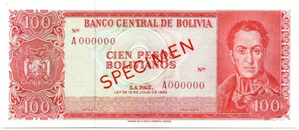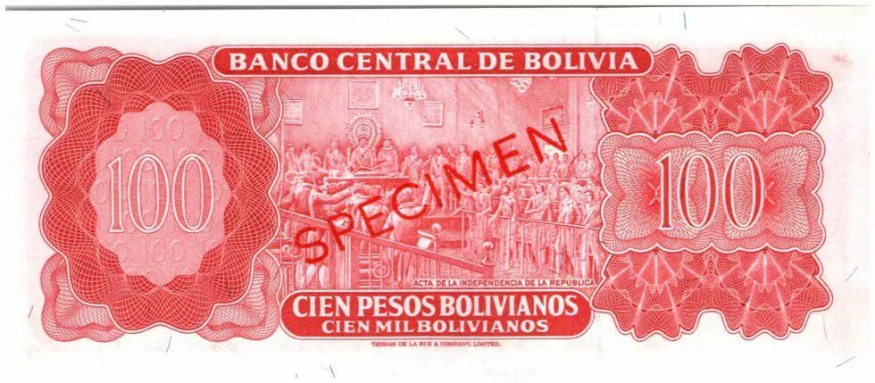 Billet Bolivie 100 Pesos Bolivianos Bolivianos, Simon Bolivar - Déclaration Indépendance