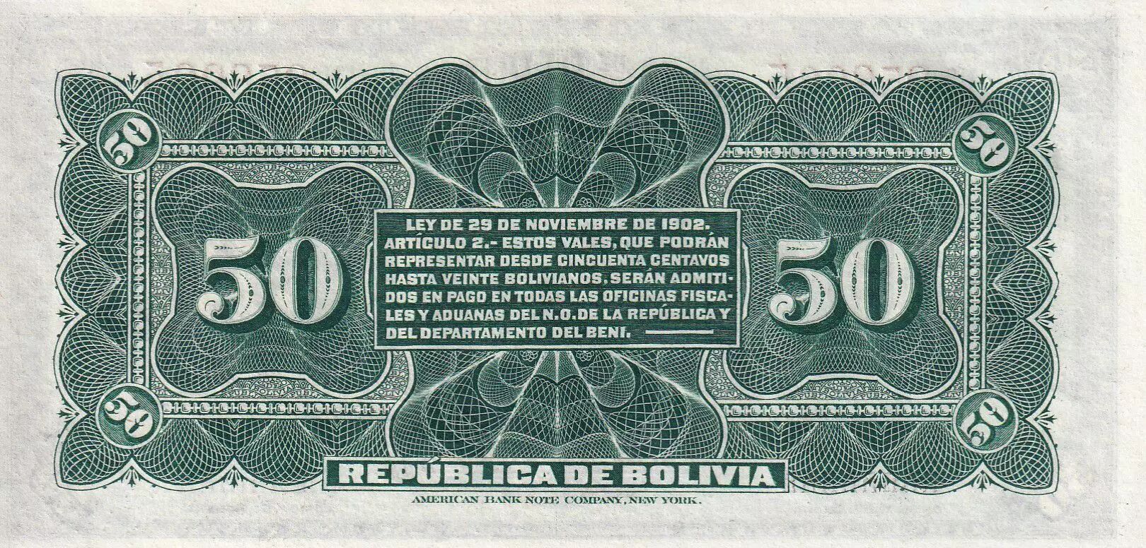 Billet Bolivie 50 Centavos - Armoiries - Aigle - 29-11-1902 - Série F - P.91a