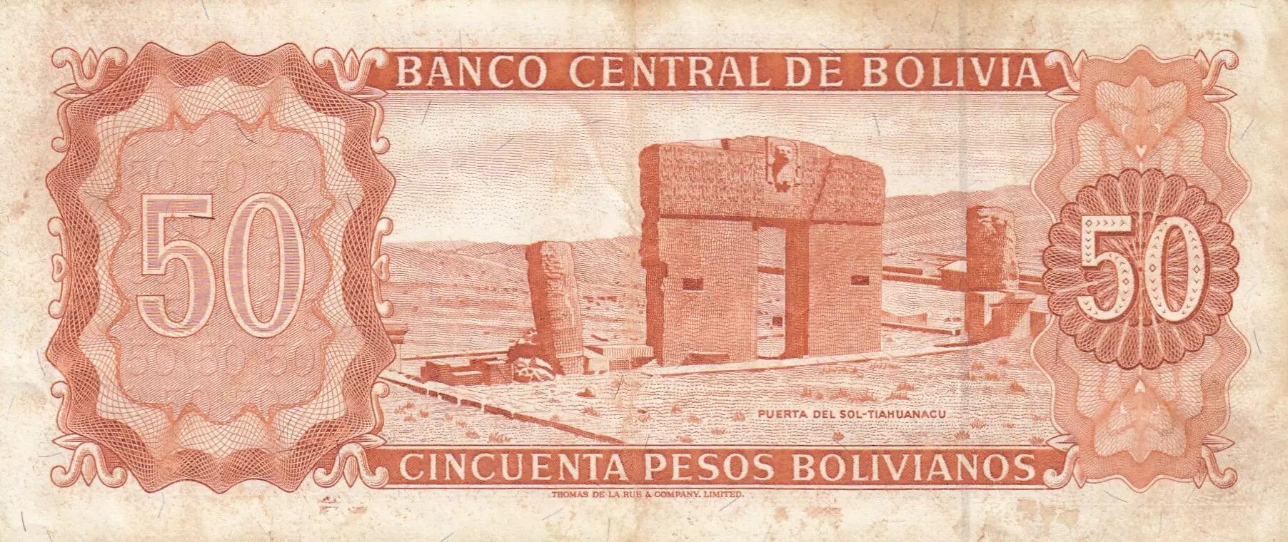 Accueil > Archivage > archivage-Billets du Monde > Bolivie 50 Pesos - A. J. de Sucre - Ruines - 13-07-1962 - Série G