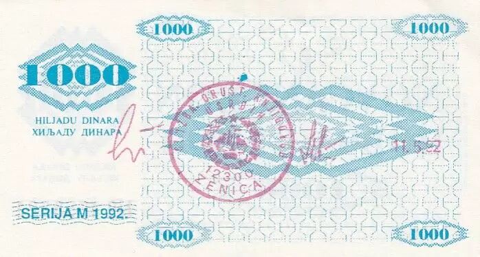 Banknote Bosnia-Herzegovina 1000 Dinara Peace Dove - Zenica - 11-05-1992