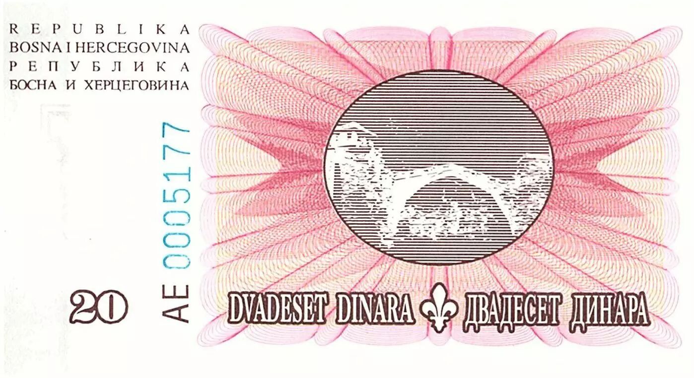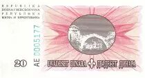 Home > World Banknotes > European Banknotes > Bosnia and Herzegovina > Bosnia-Herzegovina 20 Dinara Mostar bridge - 1994 - Reduced size