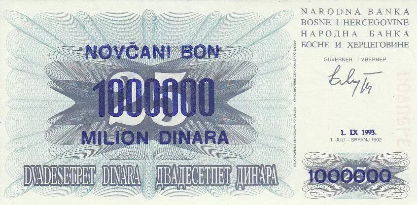 25 Overprint 1.000.000 Dinara Issuing date: 1993/09/01