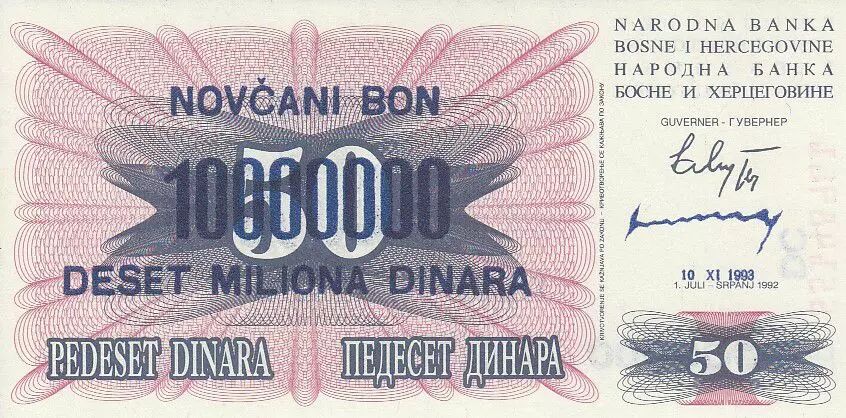 25 Overprint 10.000.000 Dinara - Purple Issuing date: 1993/11/10