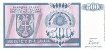 Banknote Bosnia-Herzegovina 500 Dinara - Eagle with 2 heads - 1992 - Serial AA