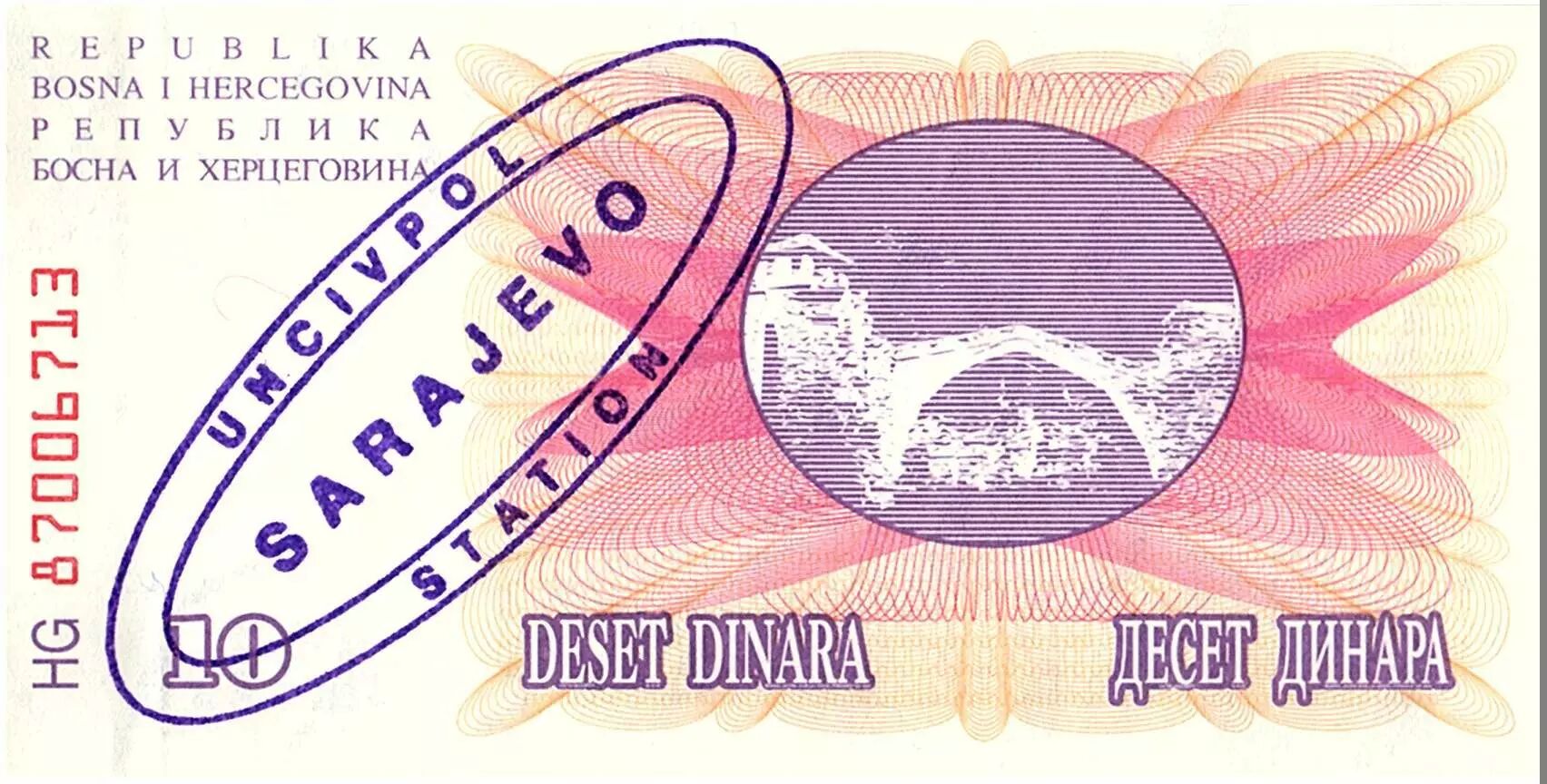 Billet Bosnie-Herzégovine 10 Dinara Pont de Mostar - 1992 - UN CIV POL
