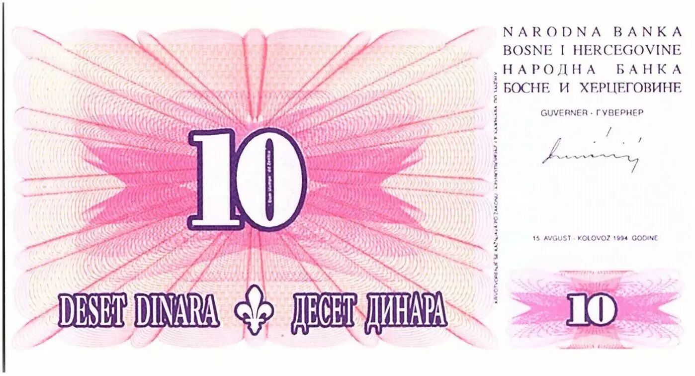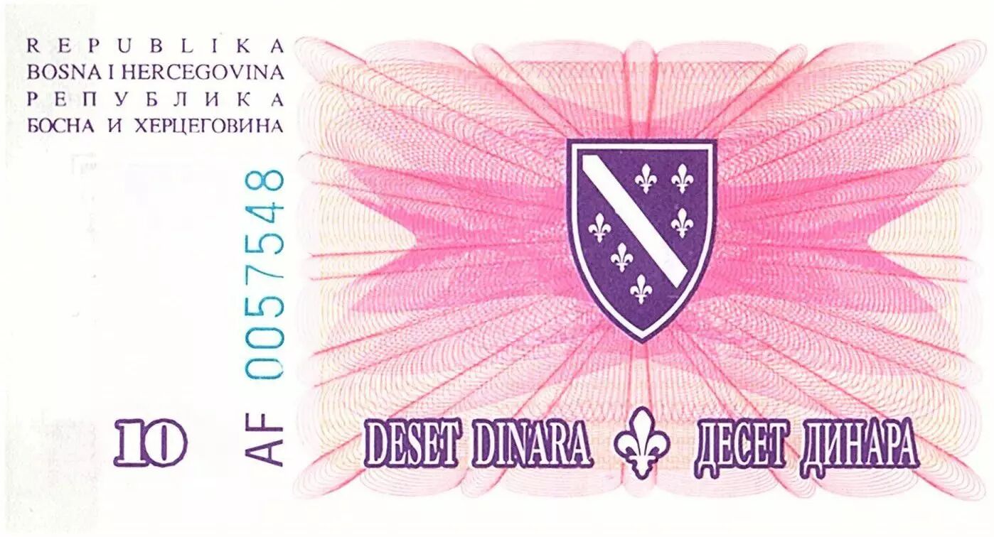 Billet Bosnie-Herzégovine 10 Dinara Rose et Armoiries - 1994 - Petit Format