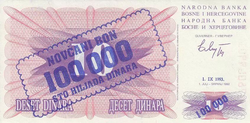 10 Surcharge 100.000 Dinara - Pont Mostar