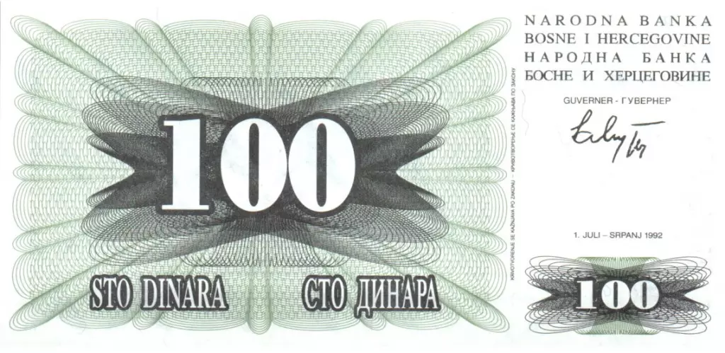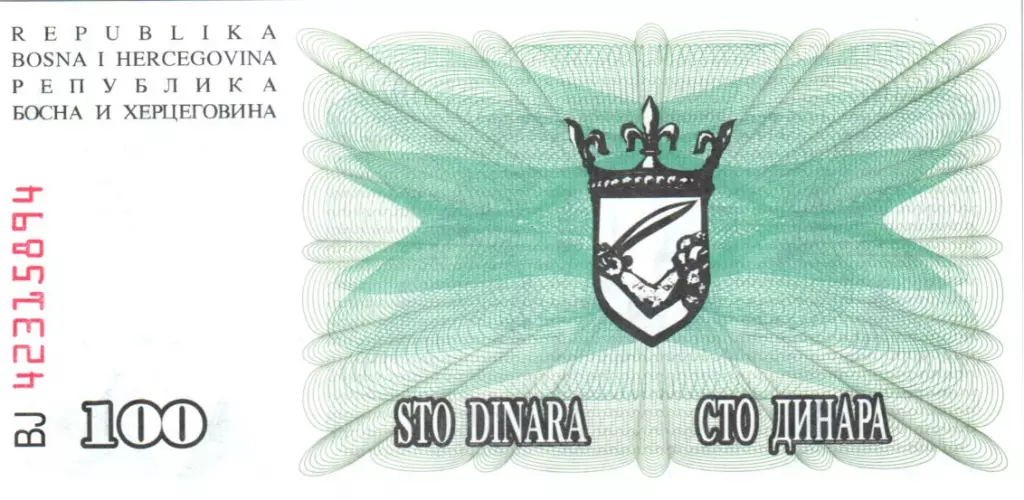 Accueil > Billets du Monde > Billets d'Europe > Bosnie-Herzégovine > Bosnie-Herzégovine 100 Dinara Armoiries - 1992
