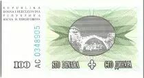 Billet Bosnie-Herzégovine 100 Dinara Pont de Mostar - 1994 - Petit Format