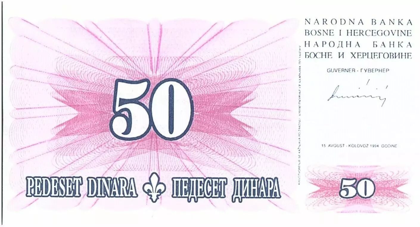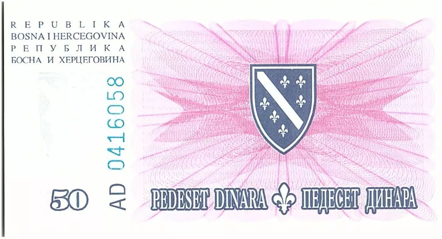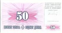 Billet Bosnie-Herzégovine 50 Dinara Rose et Armoiries - 1994 - Petit Format