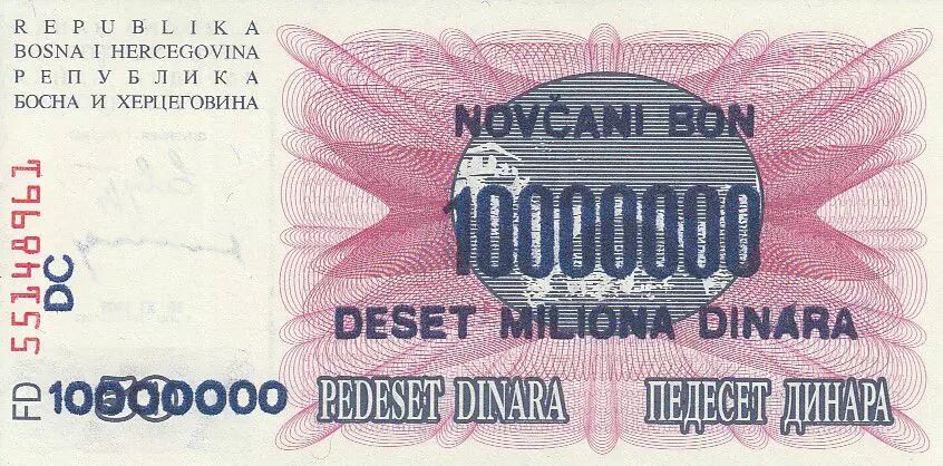 25 Surcharge 10.000.000 Dinara - Violet