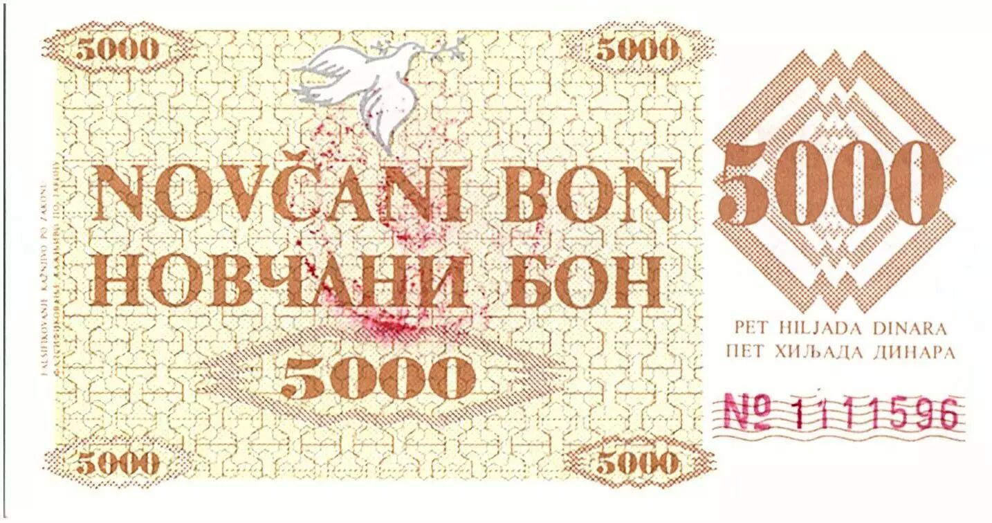 Billet Bosnie-Herzégovine 5000 Dinara Colombe de la Paix - 1992