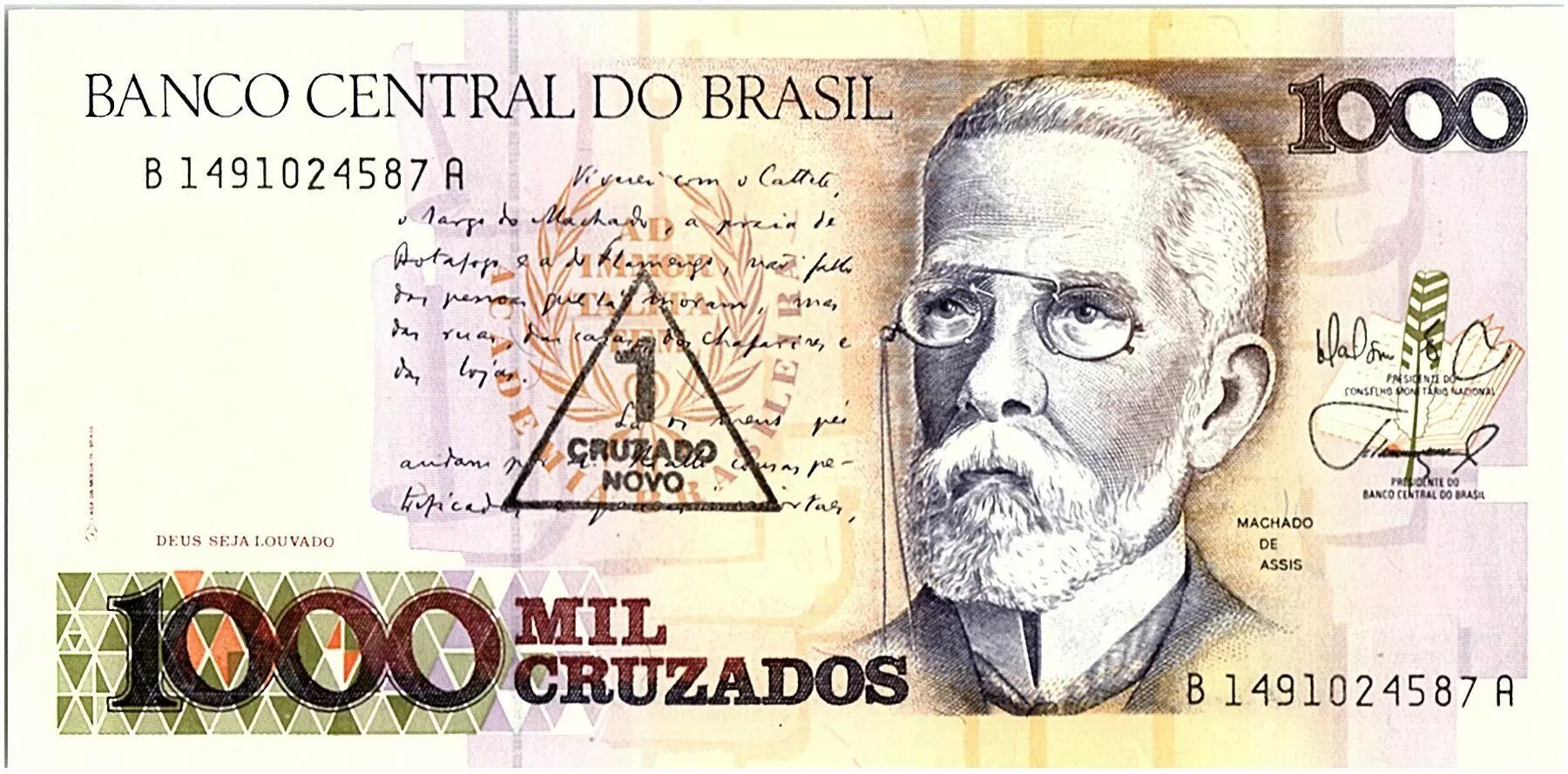 Banknote Brazil 1 Cruzado Novo on 1000 Cruzados - Machado de Assis - 1989