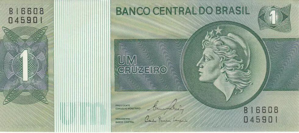 Home > World Banknotes > American Banknotes > Brazil > Brazil 1 Cruzeiro Liberty - Banco Central bldg - 1980