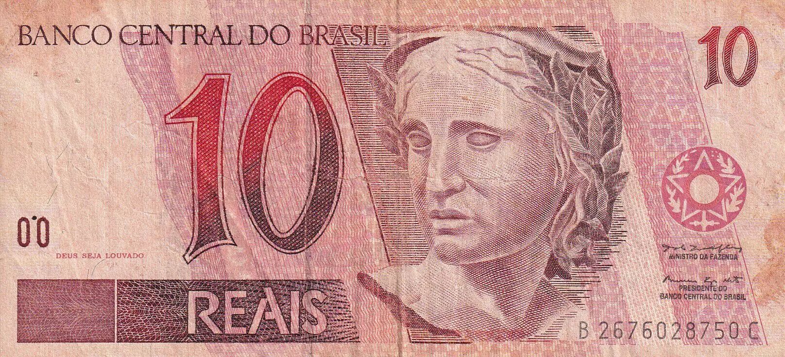 Banknote Brazil 10 Reais - Liberty - Arara - 1998 - Letter B - F - P.245