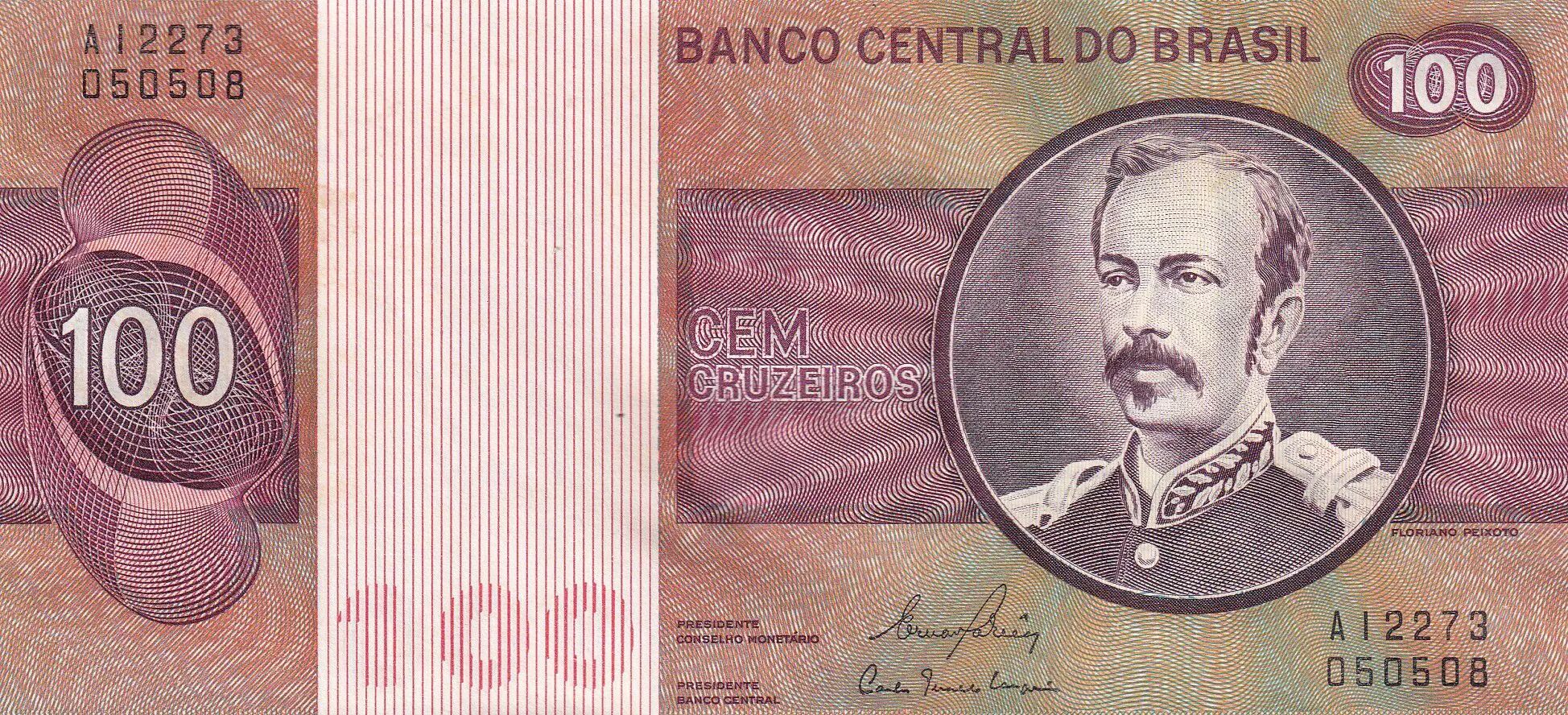 Home > > Brazil 100 Cruzeiros - Floriano Peixoto - ND (1981) - Serial A - P.195Ab