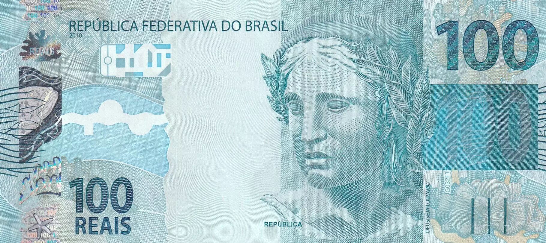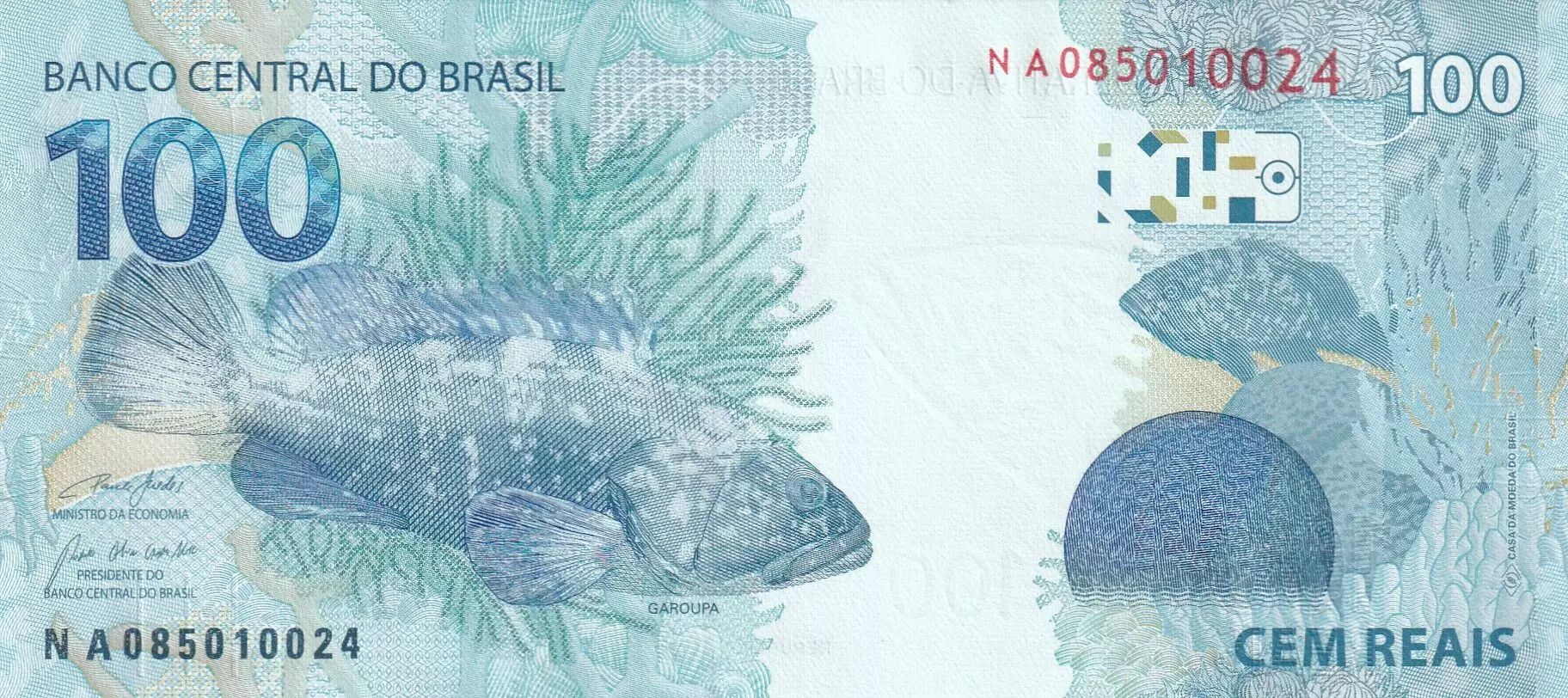 Banknote Brazil 100 Reais Liberty - Garoupa 2010 (2023) - Serial NA