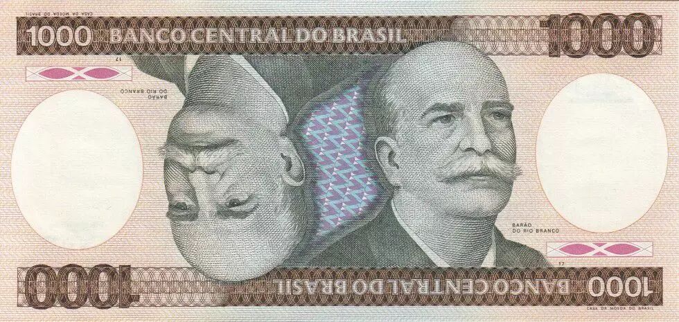 Home > World Banknotes > American Banknotes > Brazil > Brazil 1000 Cruzeiros B. do Rio Branco - Machinery - 1986 Serial B.0772