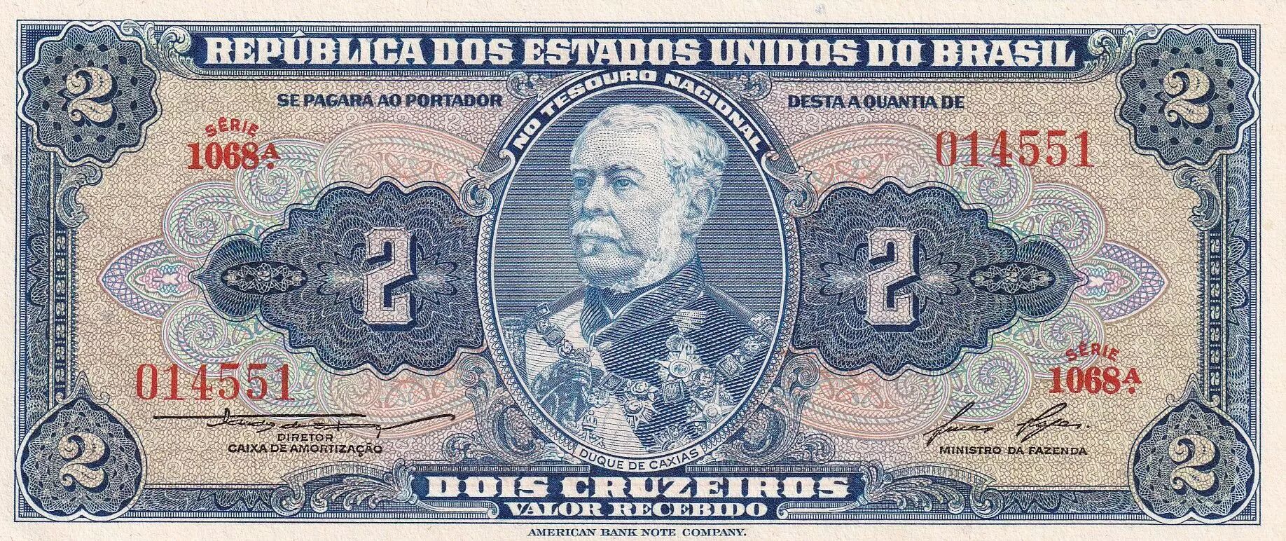 Home > > Brazil 2 Cruzeiros - Duque De Caxias - ND (1954) - Serial 1068 - P.151b