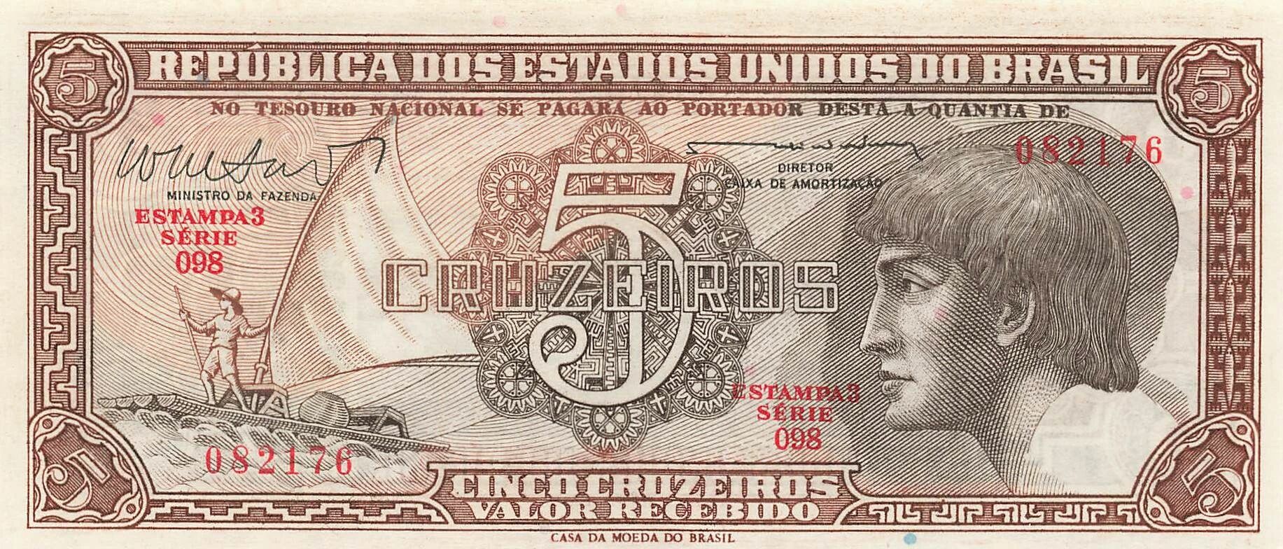 Home > World Banknotes > American Banknotes > Brazil > Brazil 5 Cruzeiros - ND (1962) - P.166b