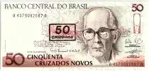 Home > World Banknotes > American Banknotes > Brazil > Brazil 50 Cruzeiros on 50 Cruzados novos, C. Drummond de Andrade - 1990