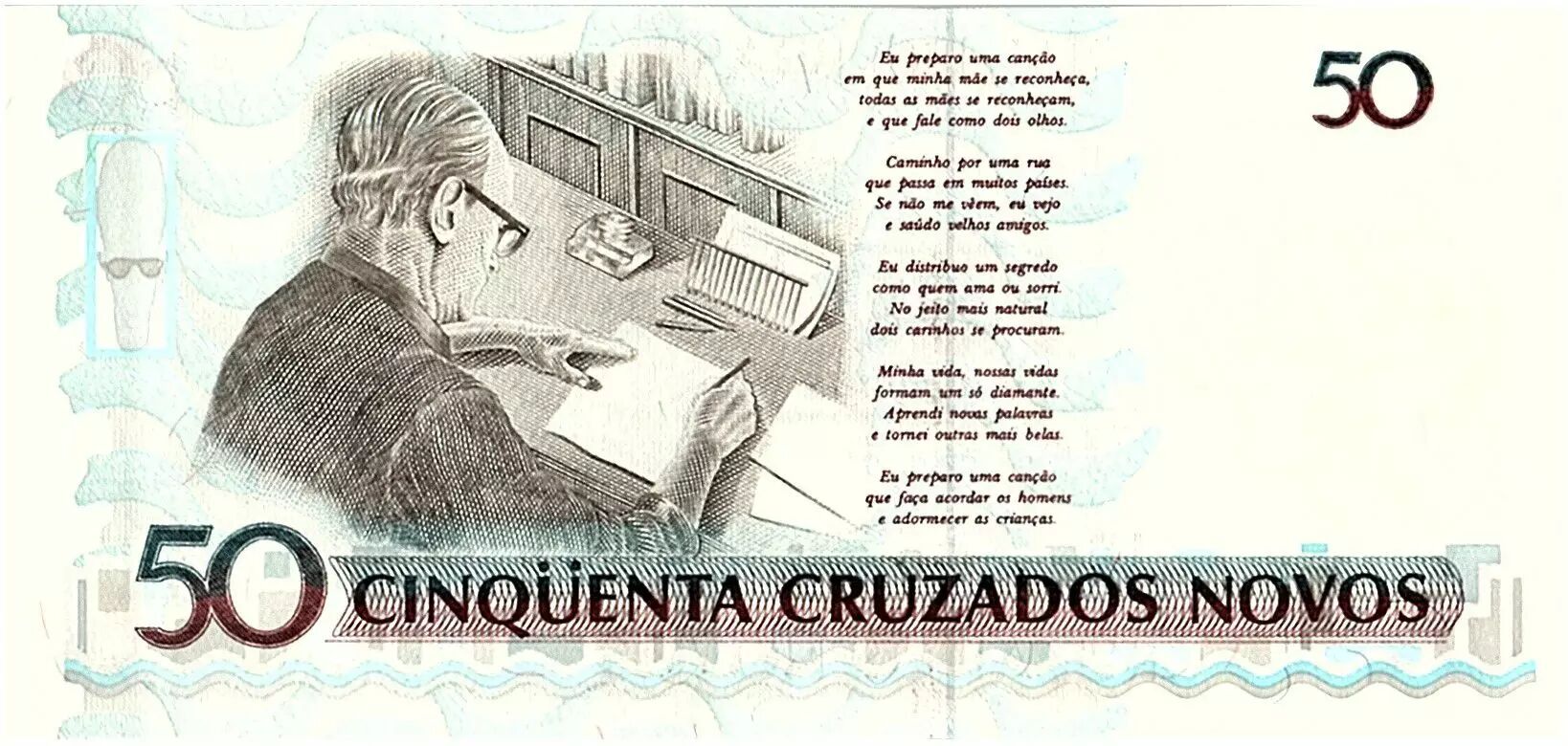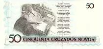 Banknote Brazil 50 Cruzeiros on 50 Cruzados novos, C. Drummond de Andrade - 1990