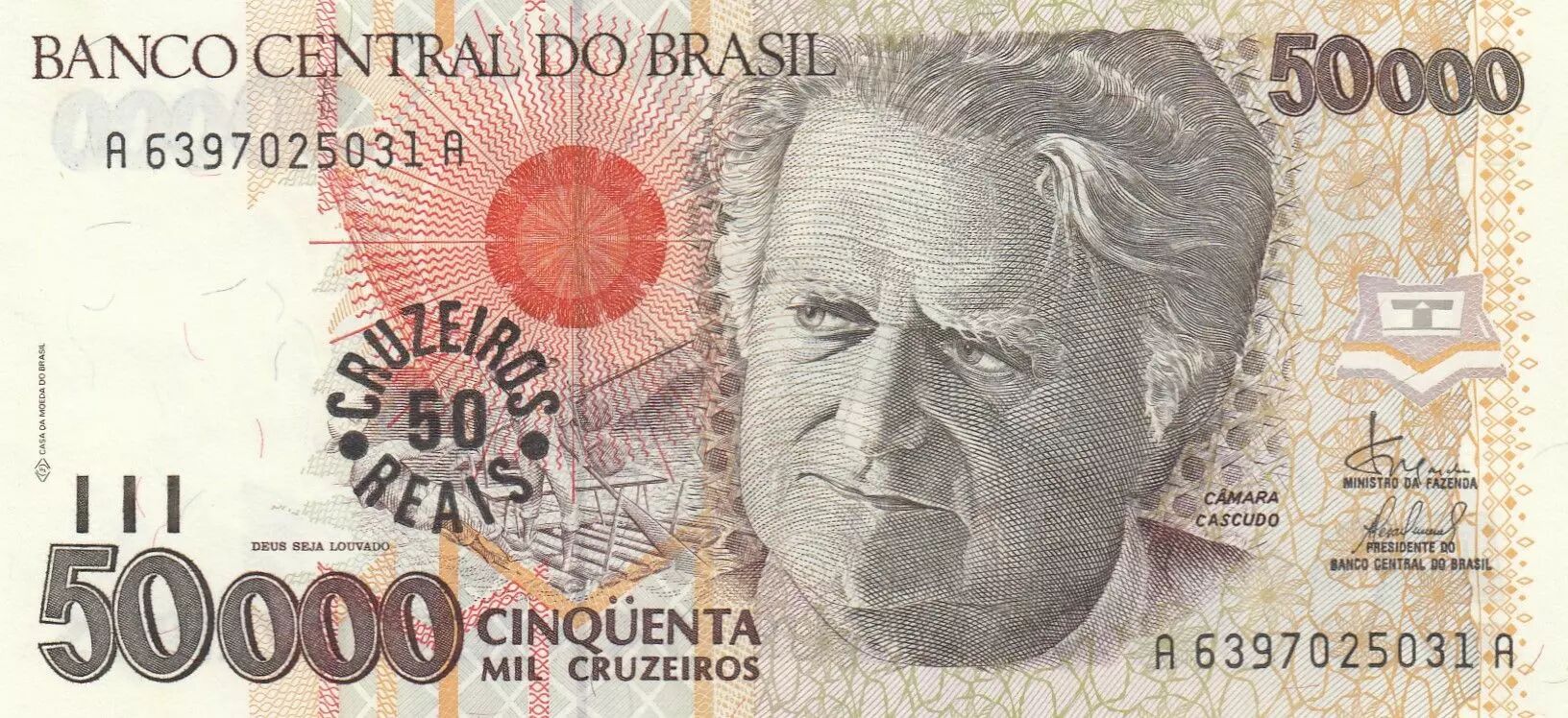 This banknote testifies to a specific period in Brazilian monetary history and pays tribute to an important cultural figure of the country.