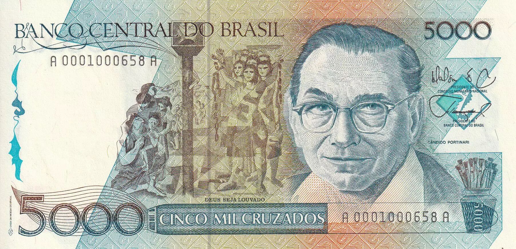 Home > > Brazil 5000 Cruzados - Candido Portinari - ND (1988) - Rare serial number - P.214