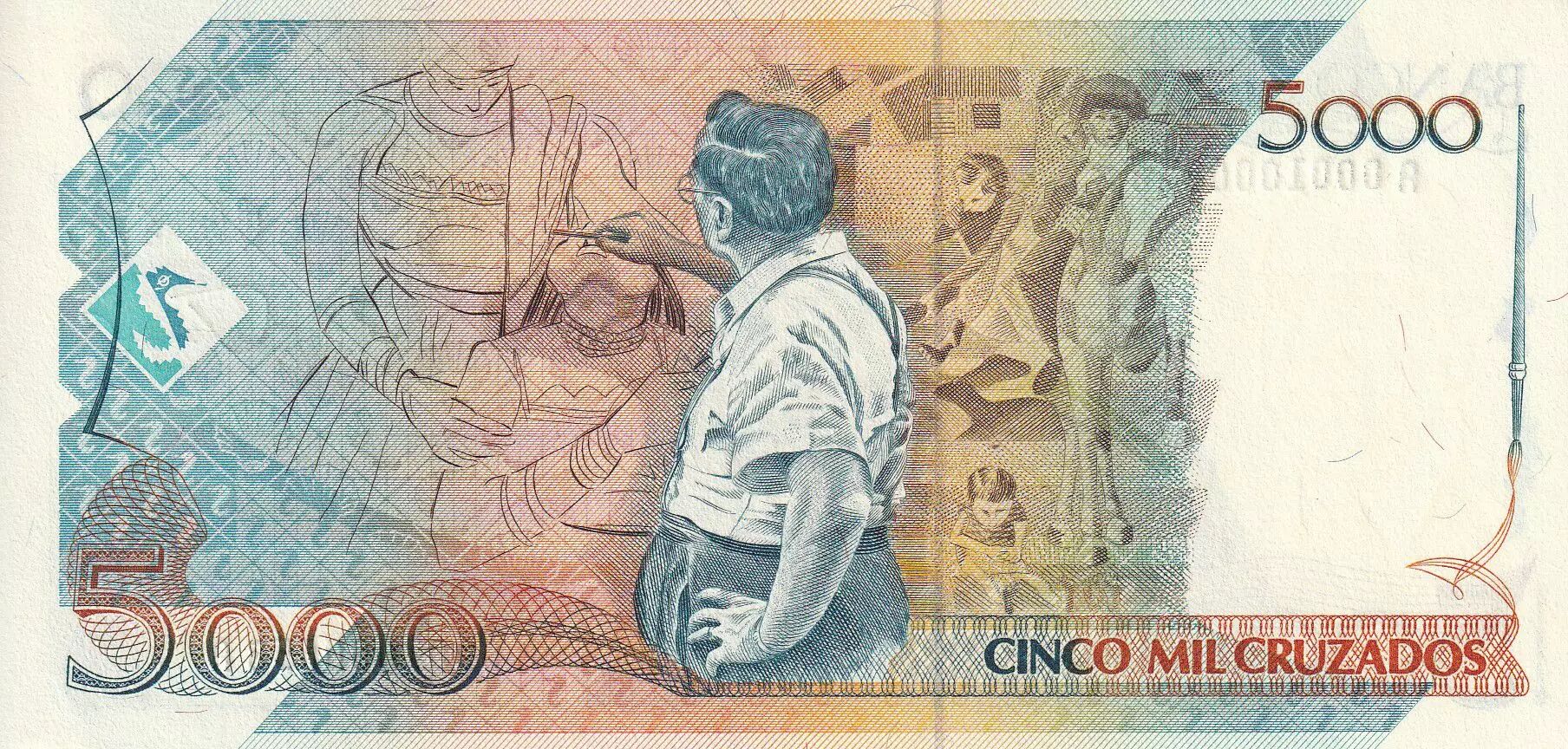 Banknote Brazil 5000 Cruzados - Candido Portinari - ND (1988) - Rare serial number - P.214