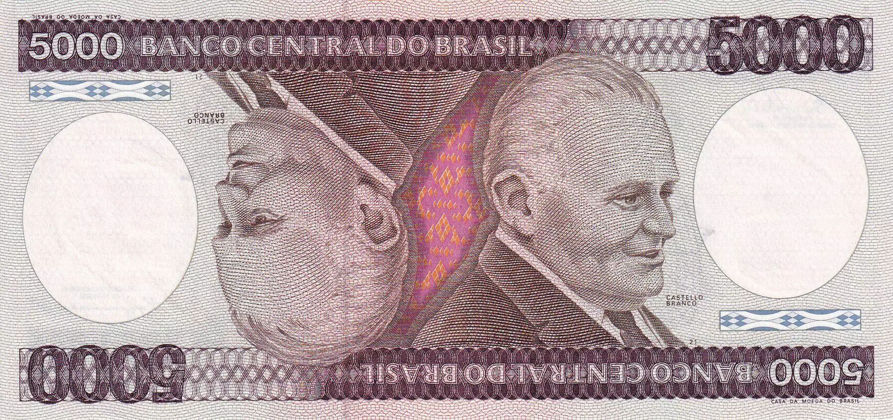 Banknote Brazil 5000 Cruzeiros - Castello Branco - ND (1984) - Serial BA - P.202c