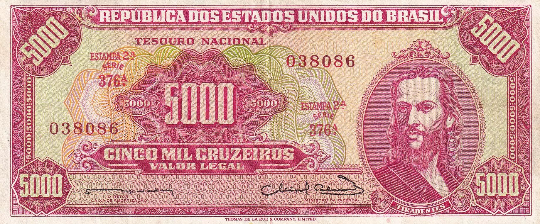 Banknote Brazil 5000 Cruzeiros - Tiradentes - 1963 - P.182a