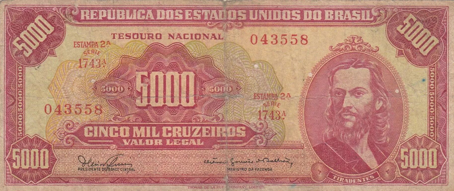 Banknote Brazil 5000 Cruzeiros - Tiradentes - 1965 - Serial 1743