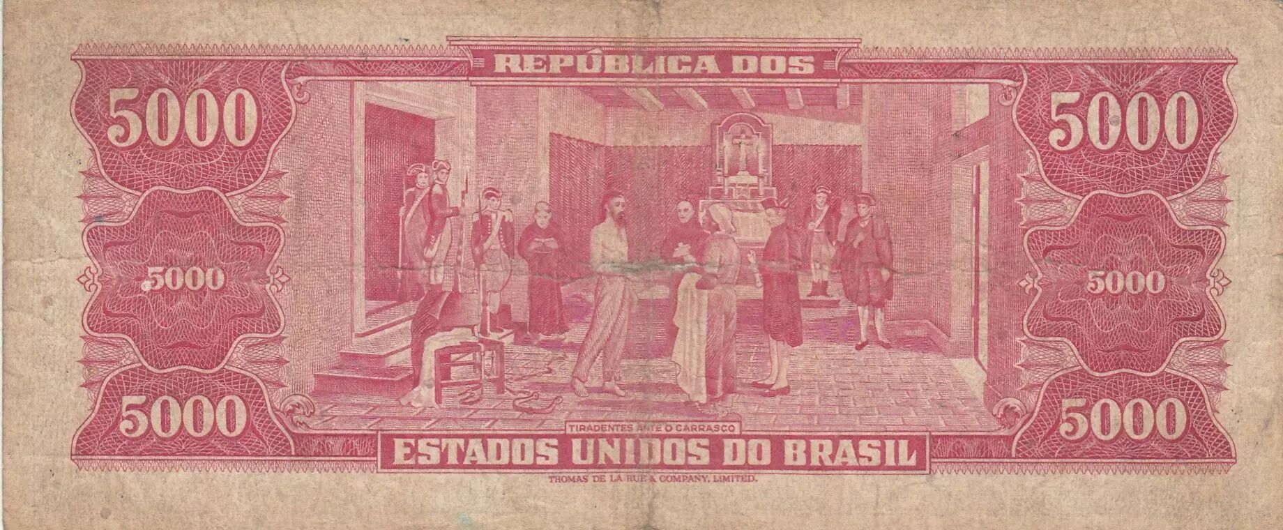 Home > World Banknotes > American Banknotes > Brazil > Brazil 5000 Cruzeiros - Tiradentes - 1965 - Serial 1743
