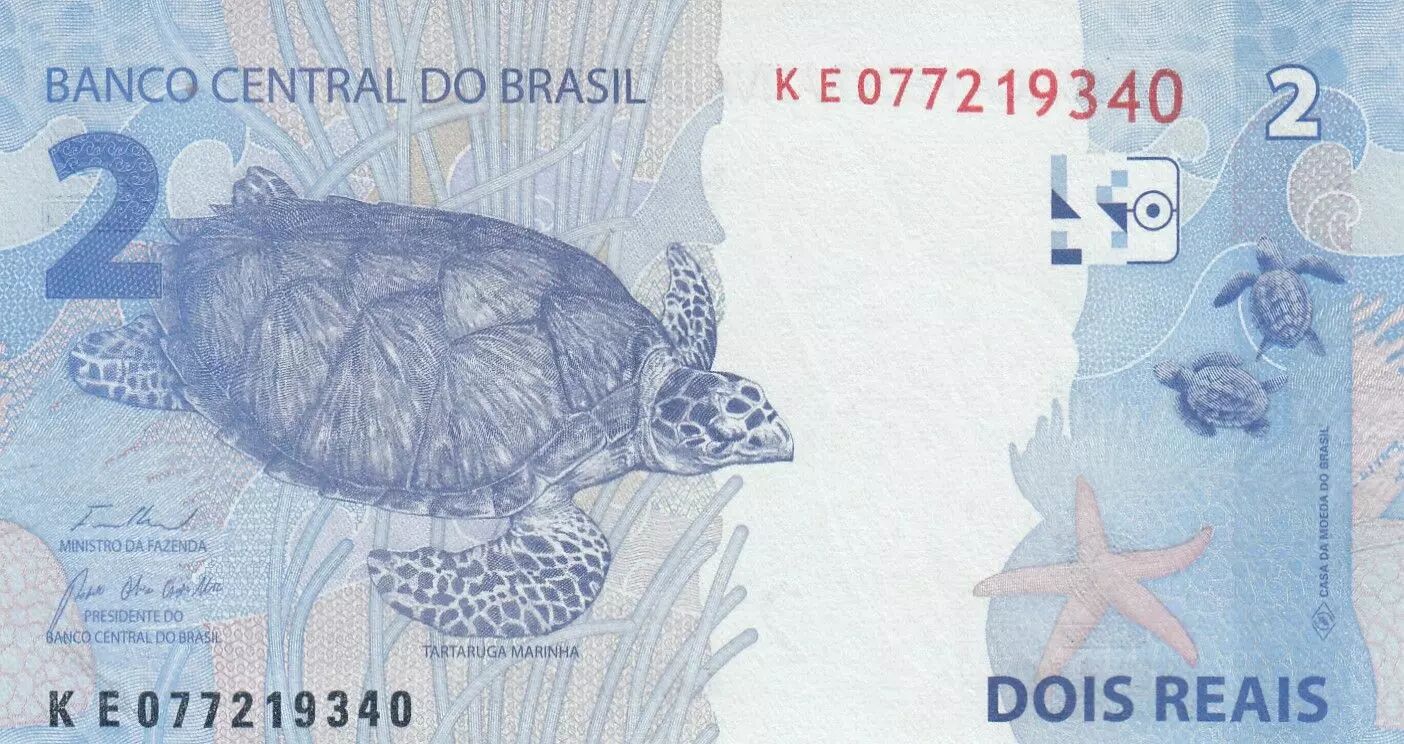 Billet Brésil 2 Reais - Liberté - Tortues 2010 (2024) - Série KE